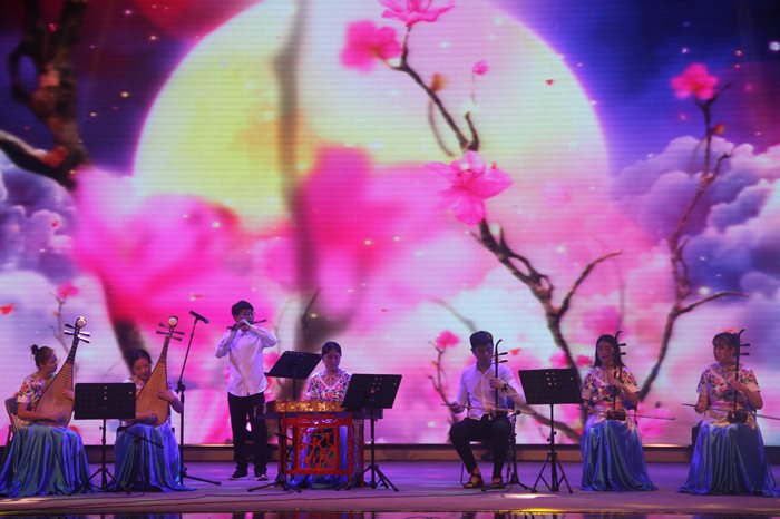 晚7时30分,伴随着舞蹈《舞动青春》,晚会正式拉开帷幕;二胡齐奏《新赛马》用动感的节奏为在场观众描绘了草原赛马的生动场面。
