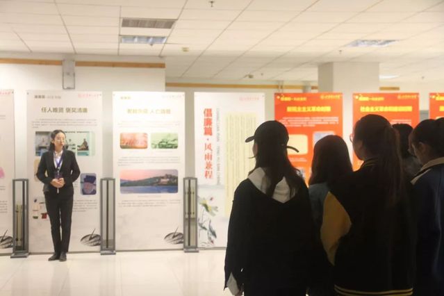 随后,由两位讲解员同学介绍此次活动的内容。此次活动展共分为五部分,以丰富的图文展板让大家心灵受到洗礼,灵魂受到震撼。