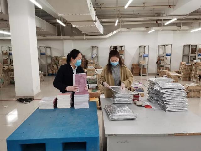 老师们全程戴好口罩,统一消毒,细节之中尽显关怀。整理教材、紧密协作、细致统计、包装邮寄,公司对员工的关心备至与公司教师的甘于奉献都汇聚在这一本本书中。