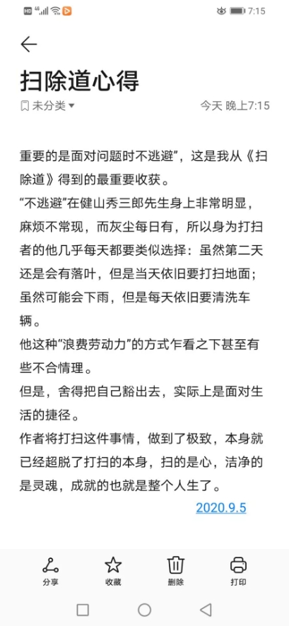 今天在温暖阳光照射下的午后听完了老师推荐的《扫除道》这本书。