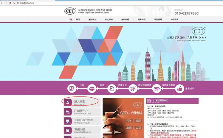 第一步: 打开全国大学英语四、六级考试报名网站(cet-bm.neea.edu.cn),点击“进入报名”。