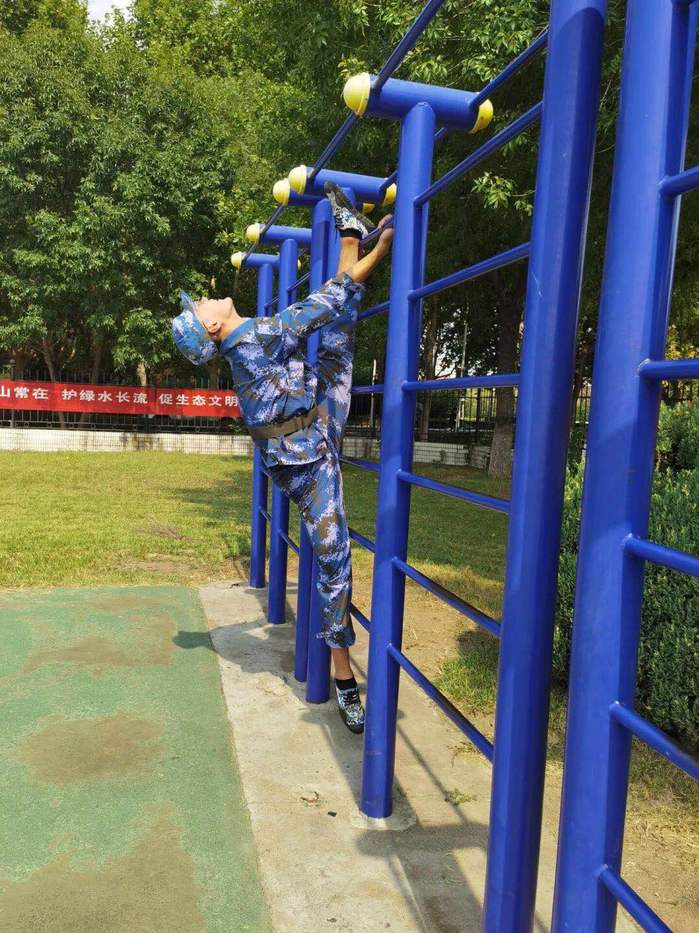 在军训的间隙,不忘勤于练习必不可少的“一字马”,成了舞蹈生军训的标配。