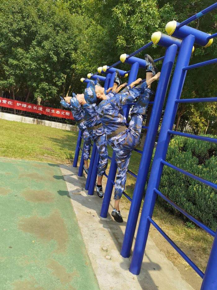 在军训的间隙,不忘勤于练习必不可少的“一字马”,成了舞蹈生军训的标配。