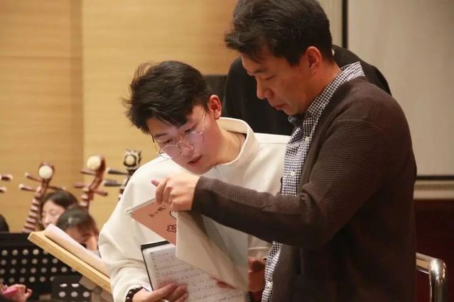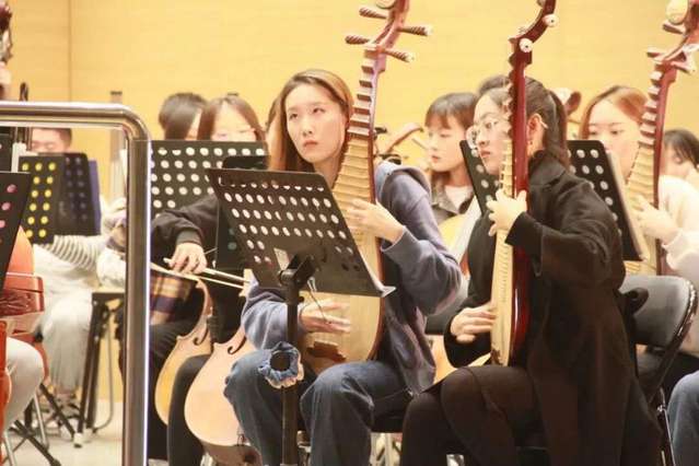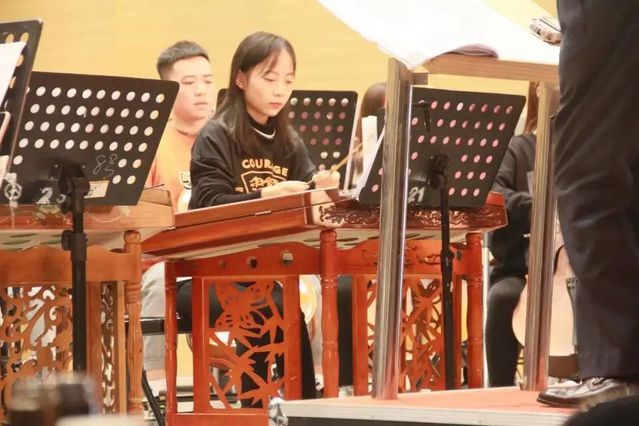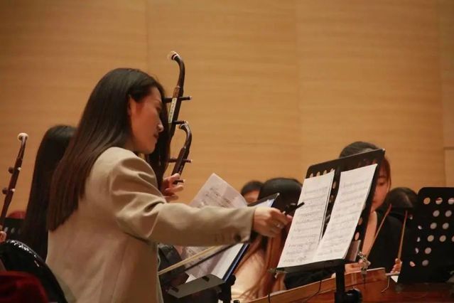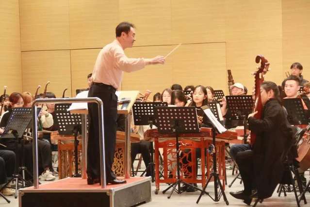 公开课上,曲祥教授亲自指挥齐风韶韵民族乐团,对乐团在演奏时出现的问题进行逐段的悉心讲解,对乐团每位成员的细节都精益求精,强弱处理分明,帮助同学们从多维角度理解乐曲,理解民族管弦乐合奏艺术。