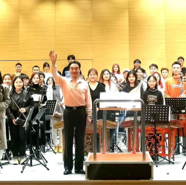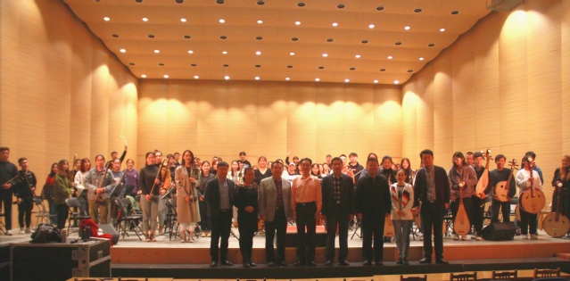 器乐教研室主任王秀琴副教授指挥乐团70余人演奏了刘文金先生改编的民族管弦乐作品《我的祖国》,演奏完毕后,曲祥教授首先对乐团同学们出色的演奏表示肯定。