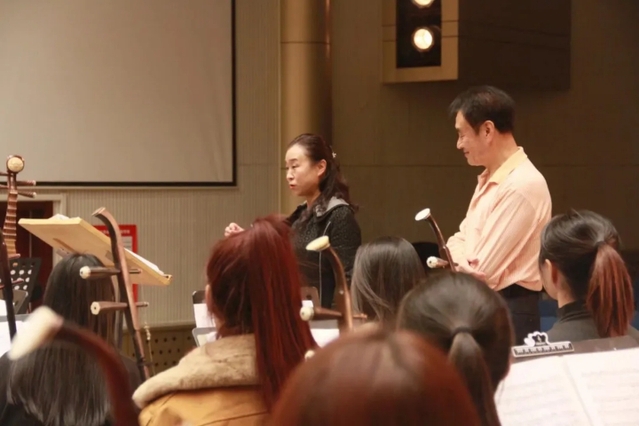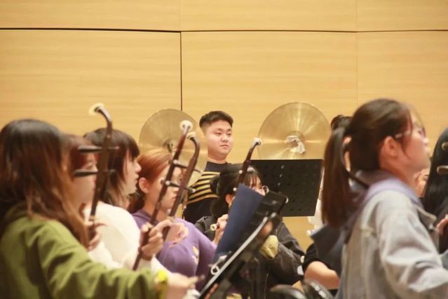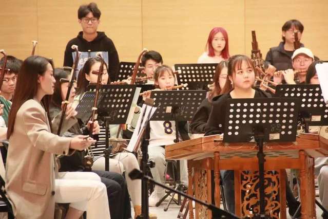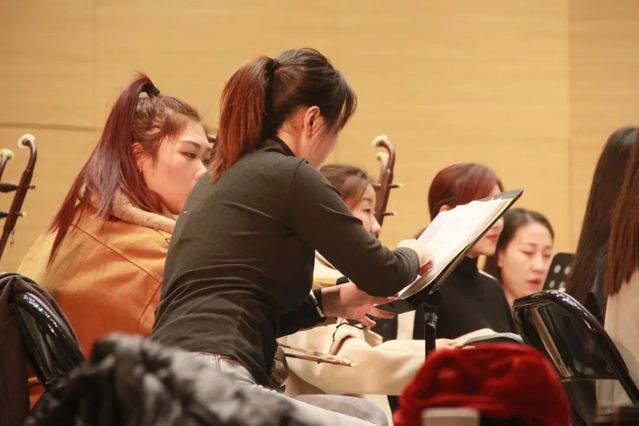 公开课上,曲祥教授亲自指挥齐风韶韵民族乐团,对乐团在演奏时出现的问题进行逐段的悉心讲解,对乐团每位成员的细节都精益求精,强弱处理分明,帮助同学们从多维角度理解乐曲,理解民族管弦乐合奏艺术。