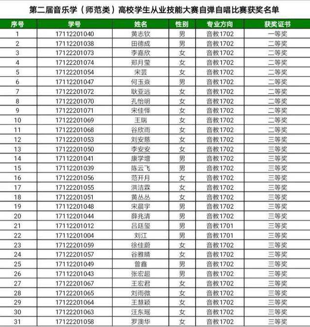 一等奖:音教1702黄志钦。