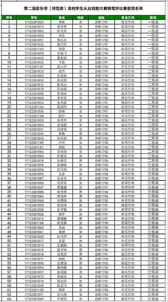 二等奖:音教1702田德成、李嘉欣、郑月莹、宋芸、何玉焱、耿亚远、孔怡明、宋佳怿、王瑞、谷欣雨。