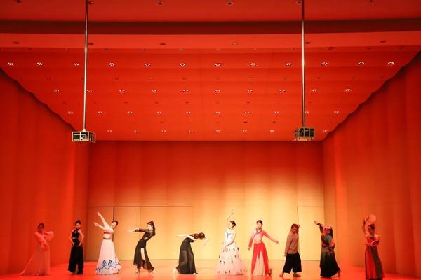 络绎不绝的姿态飞舞散开,曲折的身段手脚合并,舞姿轻灵而又不失力度,身轻似燕,舞者从容而舞、形舒意广。