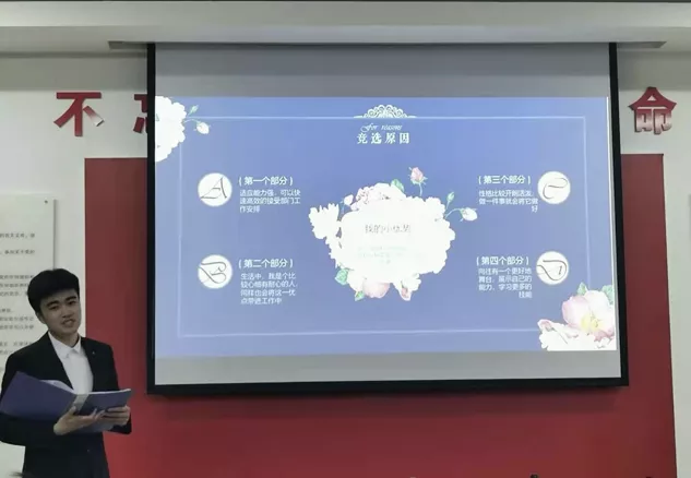 候选人依次上台进行答辩,因演出未能到现场的候选人也认真地准备了视频,进行现场播放。各位竞选者从个人简介、竞选优势、工作经验、对未来的工作展望四个方面进行演讲。演讲结束评审团根据具体情况对每位候选人提出了针对性的问题,面对“犀利”的提问,候选人的随机应变让现场响起阵阵掌声。在答辩过程中,他们展现的个人能力和工作经验得到了老师及员工代表的一致认可。各位候选人在答辩过程中沉着冷静、思维敏捷、条理清晰。评委团成员认真倾听,细心记录,并对各位参选人有了更进一步的了解。