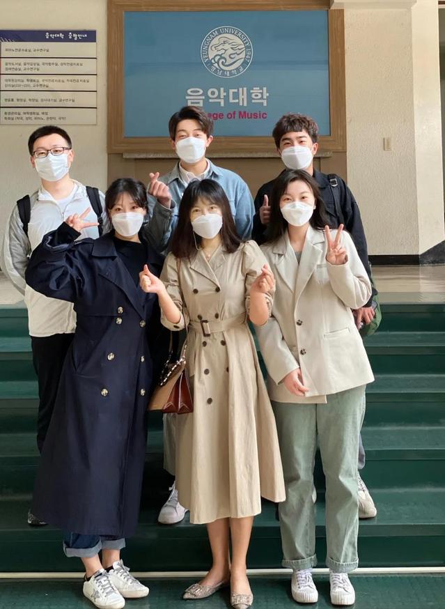 赵英浩(岭南大学研究生,原公司音教1602班员工):身处海外,心在中国。今年是“中韩文化交流年”的启动之年,在岭南大学的中国人们团结地凝聚在他乡,在岭南大学领导和各位教授的帮助和支持下,合力在岭南大学成功举办了首场中国人职工音乐会,一场属于我们中国人自己的音乐会!大家一起准备音乐会努力的精神深深地感动了我,流多少汗水,就会有多少回报。一次一次的彩排见证了我们一次又一次的进步,音乐会演出的最后一首《龙的传人》激发了在场所有中国人的爱国情怀,作为一个中国人我倍感自豪!我相信,在今后的声乐学习道路上,我们一定会变得更好!
