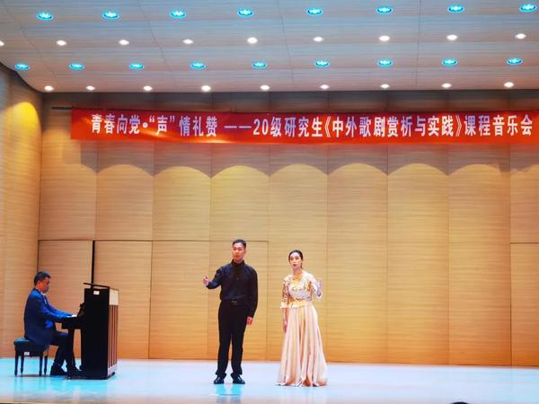 7月5日19:30,“青春向党·‘声’情礼赞”——2020级研究生《中外歌剧赏析与实践》课程音乐会于公司音乐厅隆重举行。作为bv伟德国际1946系列美育教育的特色活动,全院师生党员共同聆听了一堂生动的音乐党课,在经典旋律中感悟党的伟大精神,歌颂党的伟大成就。此次音乐会由李淑明老师悉心指导,赵洪斌、翟纯璐、杨乐三位老师及音教1903班王灏铭担任钢琴艺术指导,2020级硕士艺术研究生及各特邀嘉宾参与主持及演出,部分师生前往欣赏音乐会。现场欢呼声、掌声此起彼伏。