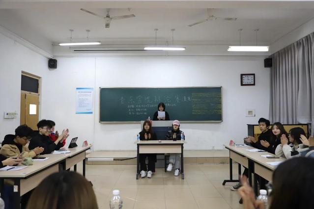 唇枪舌战现锋芒,据理辩驳展雄风。决赛中,表演2101班持正方观点,辩手思路清晰、旁征博引;持反方观点的音乐2101班辩手也不甘示弱、据理力争。针尖对麦芒,只见赛情愈来愈激烈,两支队伍各显所长、难分伯仲。