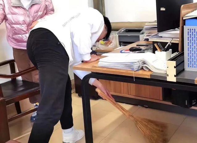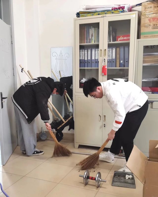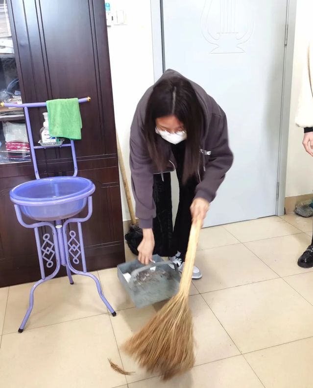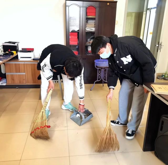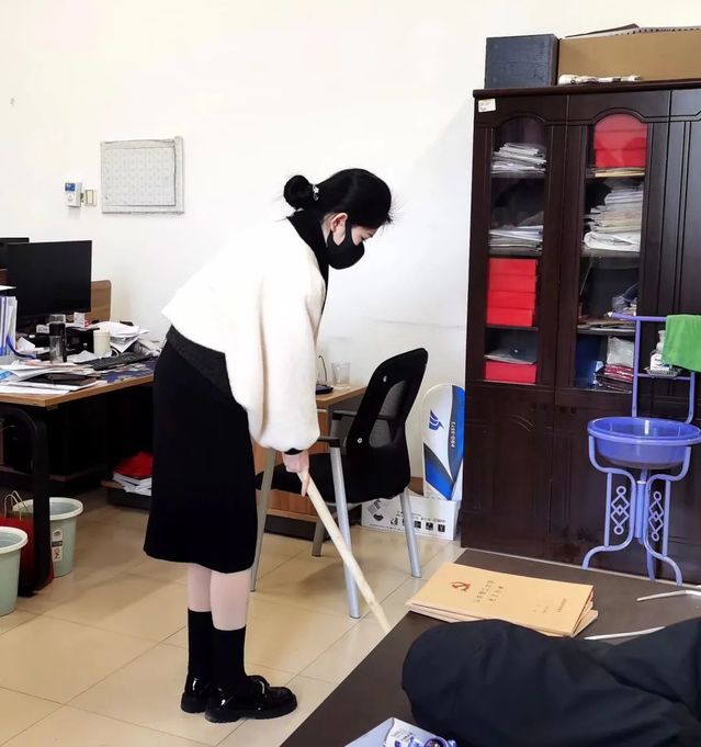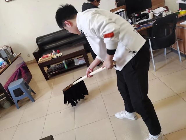 办公室内,志愿者们分工有序、配合默契,齐心协力将教师办公室打扫干净,让老师度过更轻松愉悦的工作时光。