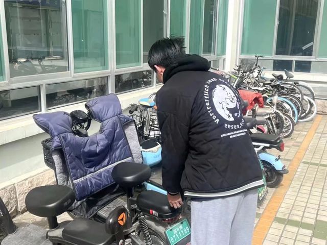 电动车及自行车摆放处,一排排整齐摆放的小车,都体现着同学们行动的轨迹。