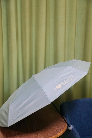 公司为毕业生定制了晴雨两用的胶囊伞,伞是遮风挡雨的象征,希望未来的你们一切顺利,山理工永远是你们温暖的港湾。