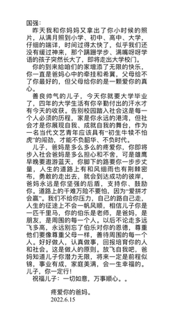 辅导员:每一封信都是家长认真准备的,也曾反复修改,无论字多字少,都是家长最真挚的感情,回到家给爸爸妈妈一个大大的拥抱吧~