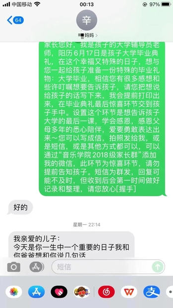 最后,辅导员老师为每一位毕业生送上员工家长为毕业生写的一封信,在这个幸福又特殊的日子,给你满满的仪式感。