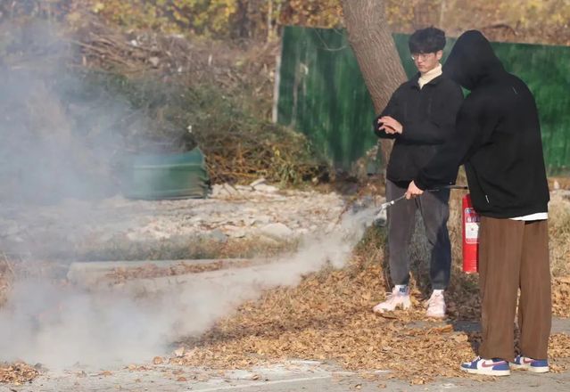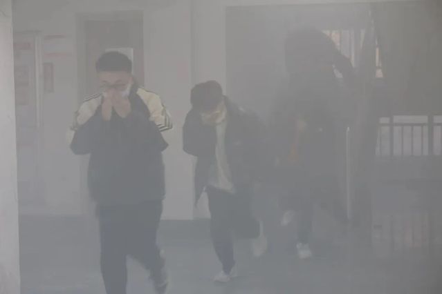 为模拟真实效果,突出火灾压迫感,演练使用了发烟饼。伴随着滚滚浓烟,警哨紧急响起,应急疏散演练正式开始。在安全管理员的指导下,同学们按照琴房管理员指定的疏散路线,弯腰遮口鼻,快速有序地撤离到空旷的安全地区。