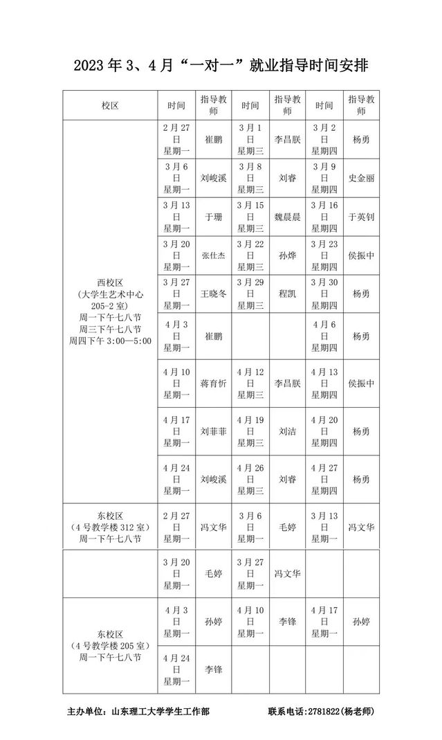 通知|2023年3、4月“一对一”就业指导时间安排