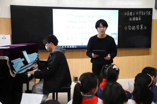 在指导团成员的带领下,他们迅速领会歌曲要义,积极配合指导团成员们演唱,通过有趣的教学氛围、亲切的互动对话,让同学们乐在其中,收获满满。