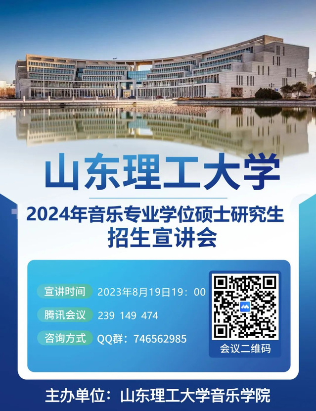 2024年音乐专业学位硕士研究生招生宣讲会(第一期)于2023年8月19日(星期六)晚7:00线上进行,腾讯会议:239-149-474。期待大家参加。