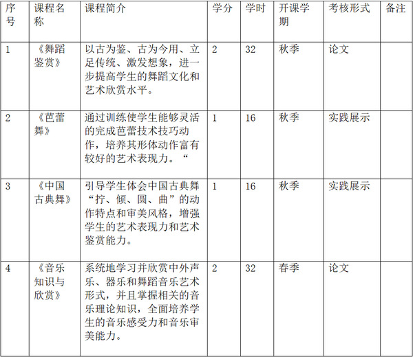 单独编班组织教学,每学期安排4-6学分的课程,1-2学年内共修满10学分。授课采用面授讲课、案例教学与实践晚会为主,定期举办线下相关交流实践活动为辅。采取大课理论案例分析学习讲解与舞蹈房具体实践环环相扣的教学模式。