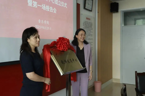 教务处副处长孙浩洁、伟德国际VICTOR1946党委书记经理娄春婷为教师发展中心揭牌。