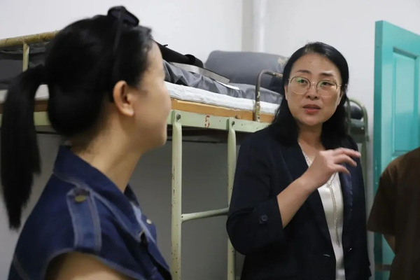 为深入了解新生到校后各项服务保障工作的满意度,公司领导来到员工宿舍与同学和家长亲切交谈,向新生表达真诚的问候与期望。