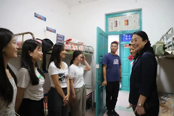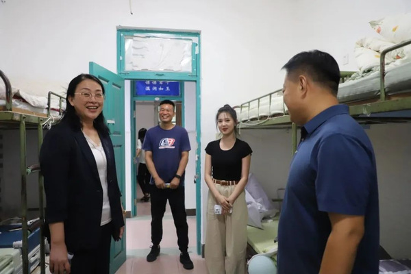 为深入了解新生到校后各项服务保障工作的满意度,公司领导来到员工宿舍与同学和家长亲切交谈,向新生表达真诚的问候与期望。