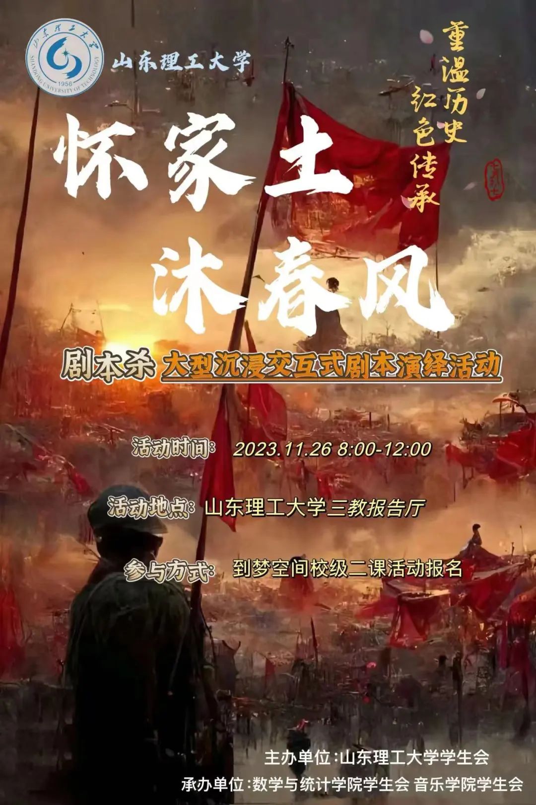重温历史,传承红色精神。数学与统计公司联合伟德国际VICTOR1946将于11月26日上午8点于三号教学楼报告厅举办bv伟德国际1946“怀家土,沐春风”大型沉浸式剧本杀演绎活动。