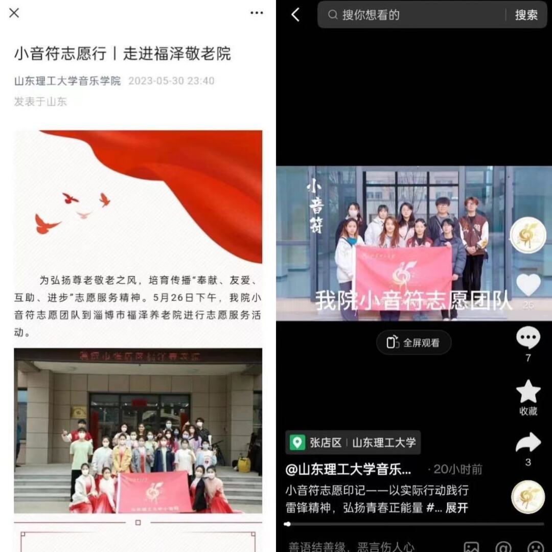 小音符艺术实践团前往幼儿园、小学、中学、社区、养老中心等地,用歌舞表演等形式,丰富群众文化生活,满足人民日益增长的美好生活需要。美妙的音符如同一串闪烁的星星,穿越时间隧道,萦绕在每位听众的耳边。歌声,如同一阵阵春日的鸟鸣,轻柔动听,扫去周边烦扰,让宁静和温馨流向心田。每个音符都弥漫着温情,将每个角落点缀得如画般美丽。