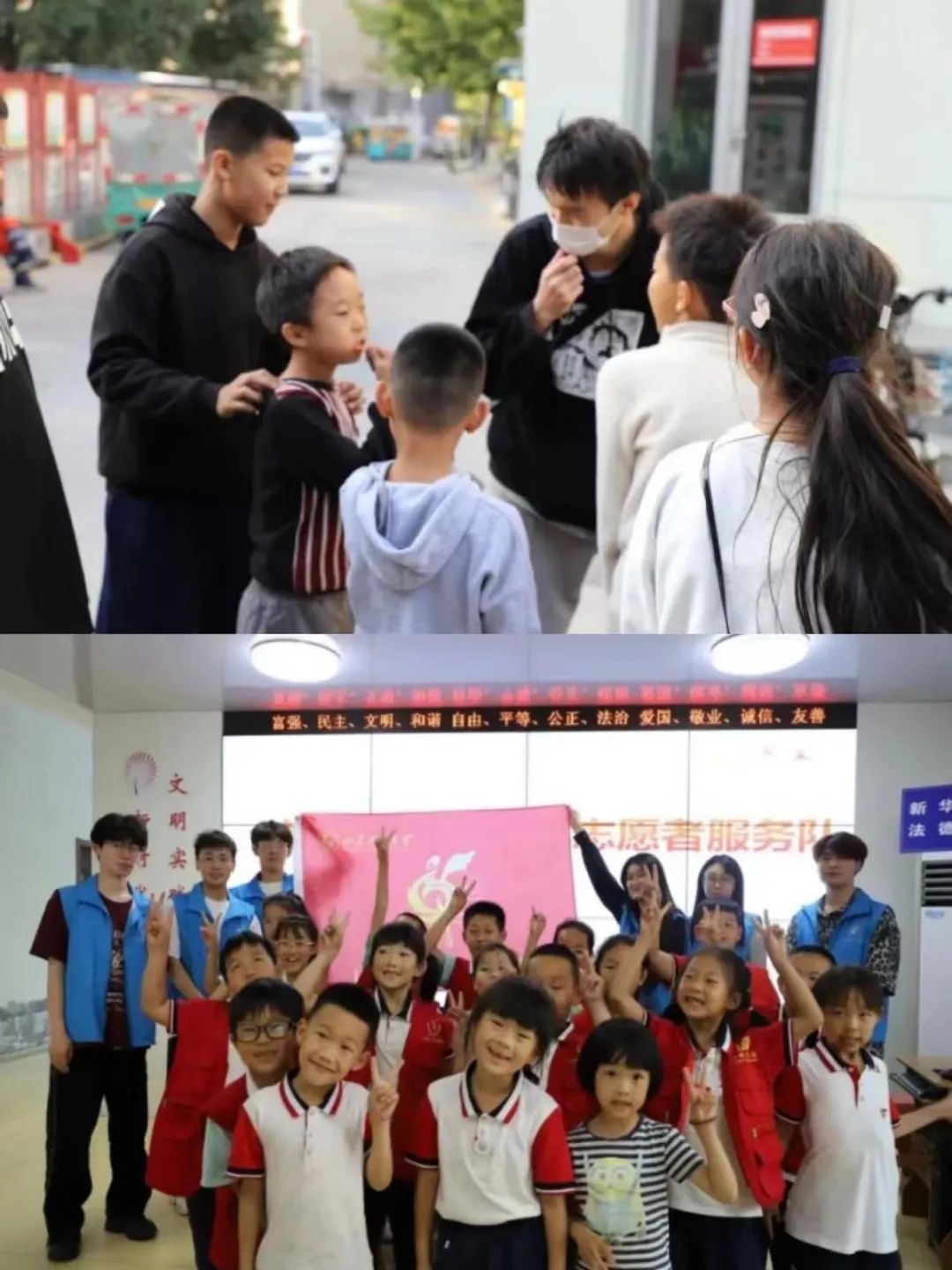 小音符艺术实践团通过志愿服务活动,协助各单位推进知识文化普及。实践团前往齐润小学、新华社区、东平村等地,开展学习交流,为孩子们进行合唱社团指导、“世界海洋日”文化知识普及、社区“小记者”等活动,做好乡村儿童情感关怀、教育关爱等服务工作。让祖国的花朵感受社会温暖,丰富孩子们的课余生活,增长艺术科学文化素养,共同保障小花朵健康快乐成长。
