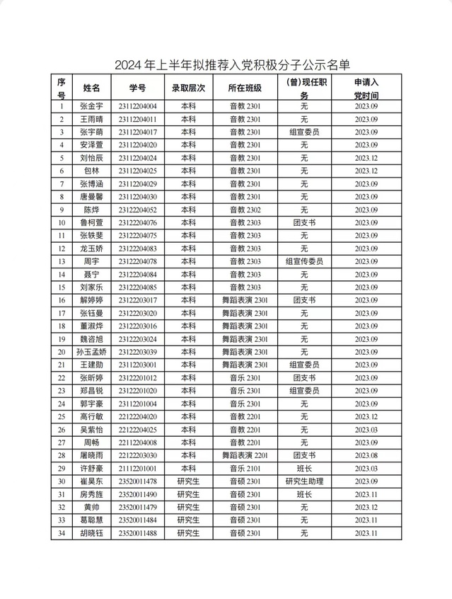 积极分子公示文件(2024年上半年)