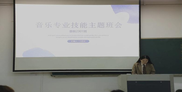 班会伊始,贾剑蕾老师向同学们强调了本次主题班会的目的和意义,为了更好地符合音乐学(师范类)专业的培养目标和要求,提升师范生专业技能,号召同学们认真学习音乐专业技能,刻苦高效练习,积极向学姐学长汲取宝贵的学习经验。