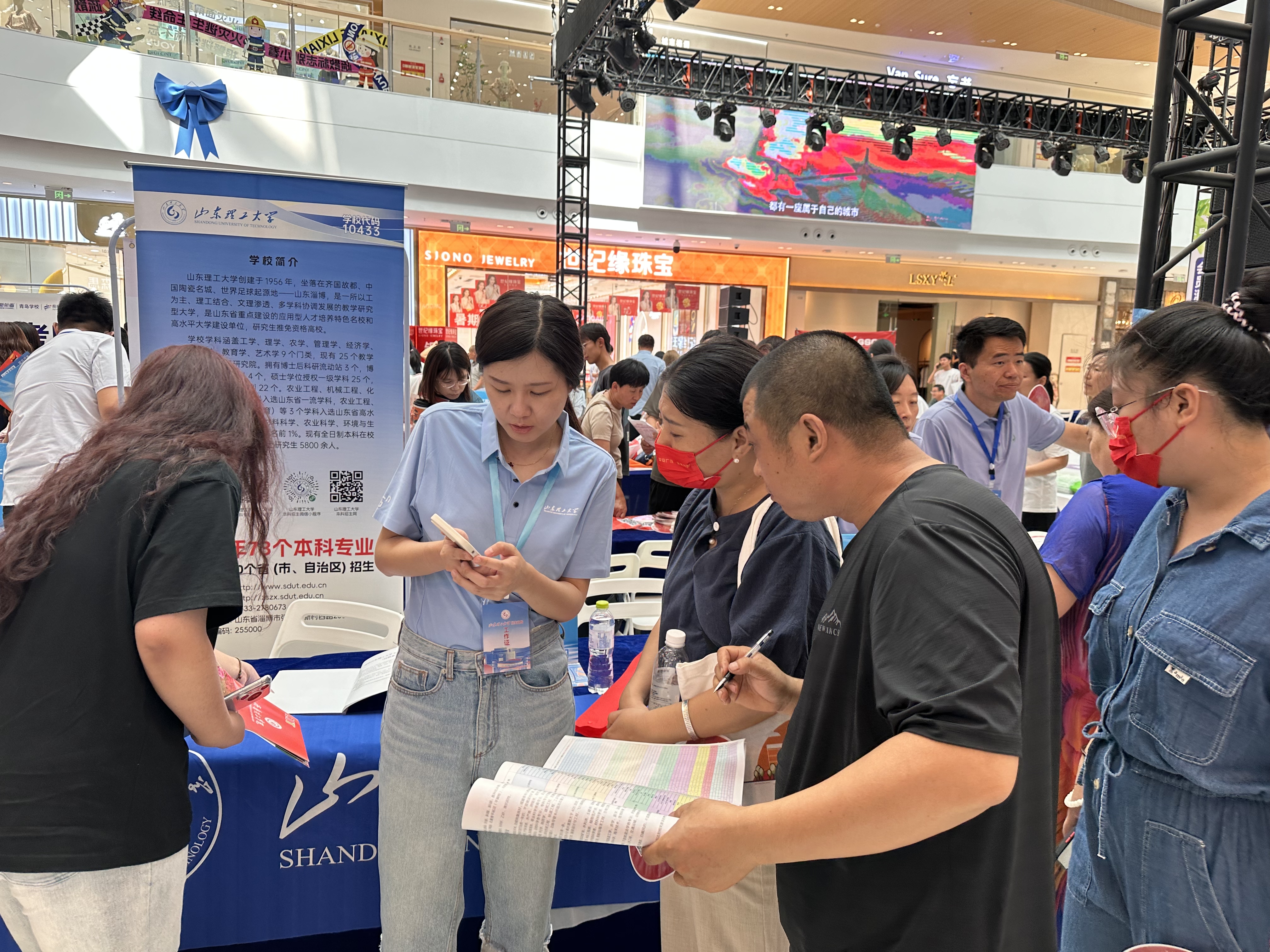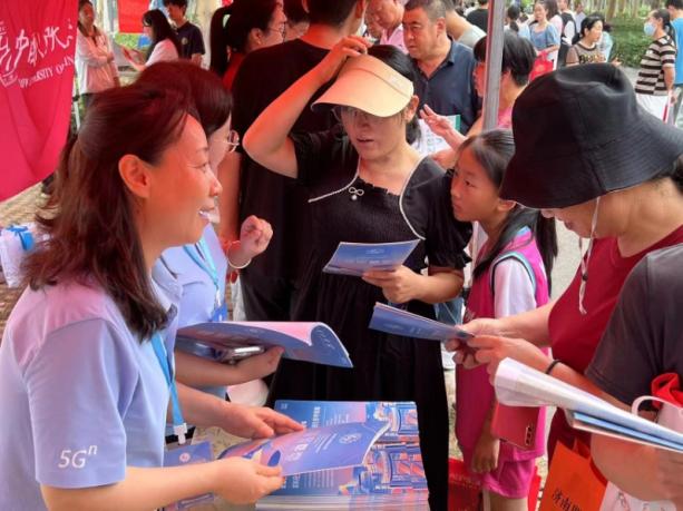 除了在各地区的高中宣传之外,还在市中心购物广场设置了咨询处。在招生咨询现场,老师们与员工、家长面对面交流,宣讲公司招生政策,为员工答疑解惑,指导志愿填报。