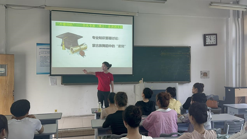 舞蹈2301班邀请公司舞蹈教研室副教授、主任张迪老师走进团支部开展团日活动。张迪老师以蒙古族舞蹈为例,为大家讲授了传统舞蹈的内涵及动作特点,并且带领大家一同学习、实践。通过此次活动大家充分理解了传统舞蹈是文化遗产的一部分,舞蹈中的各种动作和节奏都反映出该民族的文化特色和习俗,通过传统舞蹈的表演,人们可以了解到一个民族的文化、艺术和智慧,从而更好地保护和传承这一重要的文化遗产。