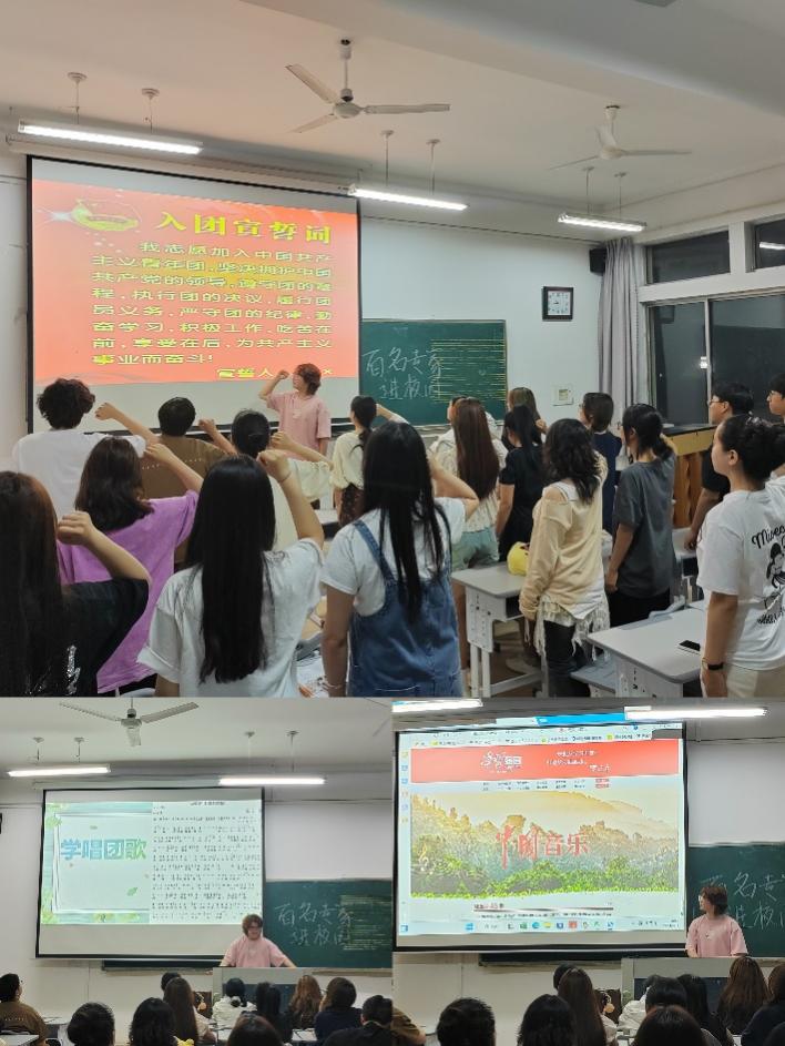 在团日活动开始前,为了让同学们找到团组织的归属感以及更好的发挥团日活动的作用,音教2301、音教2302班团支部进行了团员宣誓和歌唱团歌环节。大家歌声嘹亮,宣誓激昂,一腔忠心胆,为本次团日活动开了一个好头。