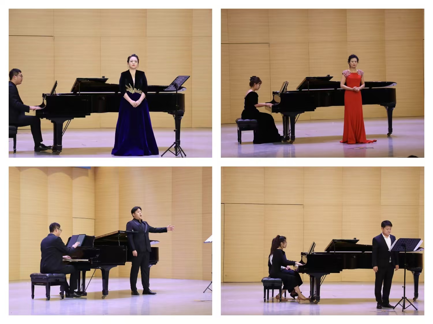 公司声乐教研室教师崔英姿老师与邵敏老师分别献上作品《睡莲》《槟榔树下织渔网》,张凯老师献唱《凝望木棉》,王帅统老师献唱《问湘江》,共计四首独唱曲目,以动人的旋律共同为音乐会增添靓丽色彩,为在场所有嘉宾带来了一场视听盛宴。