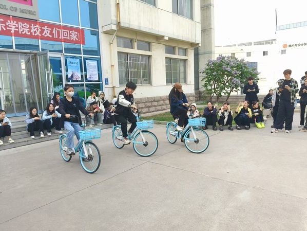 当“骑得慢才是赢家”的规则宣布时,同学们顿时炸开了锅。平日里在练功房里挥洒汗水的舞者们,此刻正与自行车较劲。王同学弓着腰保持平衡,车头如绣花针般左右微颤,额角沁出的汗珠在阳光下闪烁。此起彼伏的“稳住!”“别着急!”的助威声浪里,突然爆发出张同学银铃般的笑声——原来她的自行车正以蜗牛般的速度画着“S”形轨迹。
