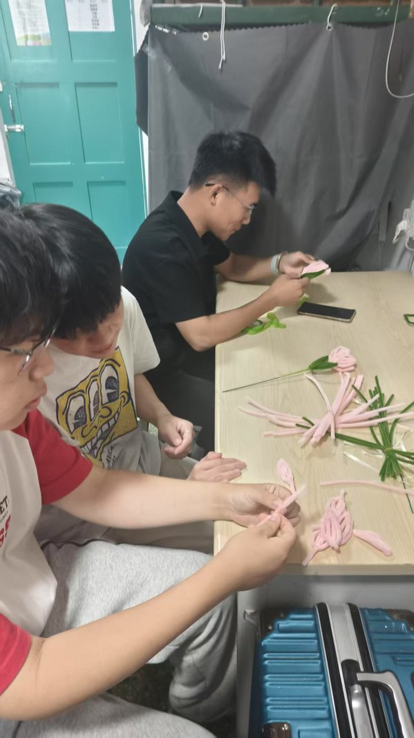 活动开始,同学们便深入挖掘中华传统文化中与母爱、感恩相关的内容。从“孟母三迁”“岳母刺字”等经典典故,到《游子吟》“慈母手中线,游子身上衣。临行密密缝,意恐迟迟归”这样饱含深情的古诗词,大家深刻领悟母爱的伟大与无私。在制作现场,这些文化元素成为同学们的灵感源泉,激励着他们用心创作每一朵郁金香。