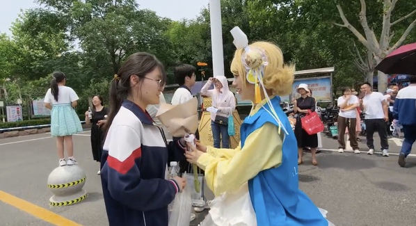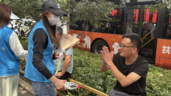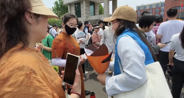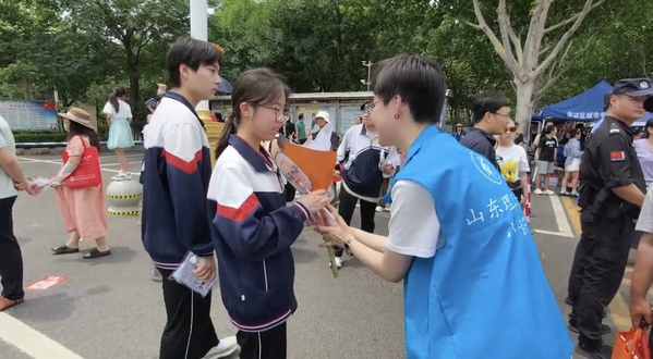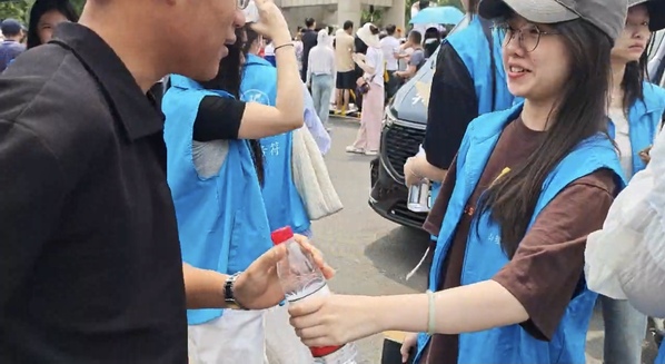 活动中,我真切感受到了传递善意的力量。亲手将承载“一举夺魁”寓意的向日葵递给考生,送上清凉的水和写满祝福的扇子,他们的一句谢谢,一个微笑,都让我觉得意义非凡。