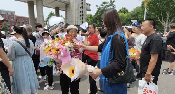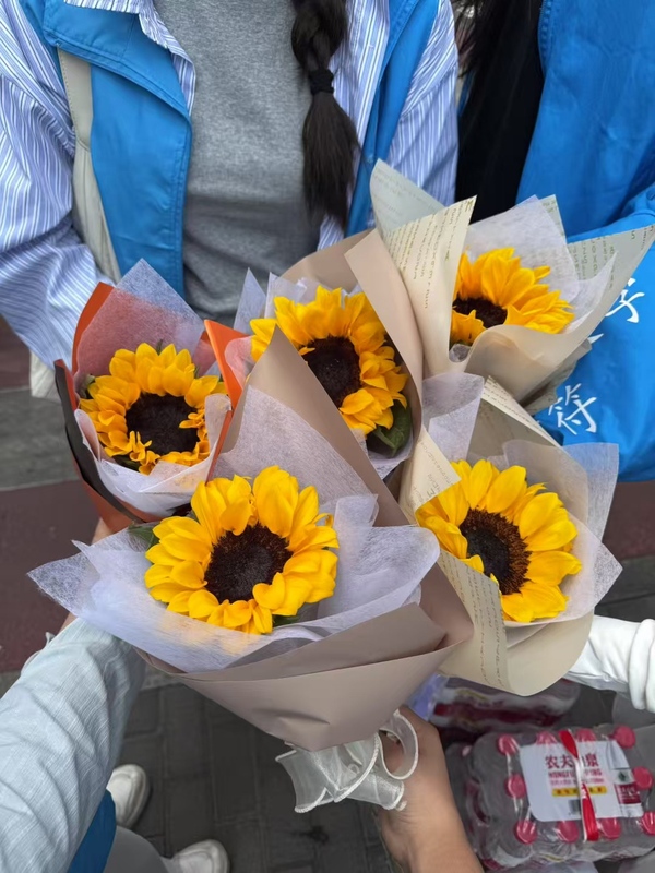 “希望这些向日葵能给你们带来好运,祝你们一举夺魁!”同学们一边递花,一边为高考生加油打气。接过礼物的高考生们,脸上露出了惊喜又感动的笑容,不少人表示,学长学姐的关怀让他们倍感温暖,增添了不少信心。一位陪考家长感慨道:“看到这些老员工来助力高考,真的很暖心,相信孩子们能感受到这份善意,考出好成绩。”