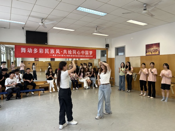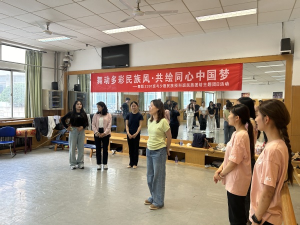 为深入贯彻落实习近平总书记关于加强和改进民族工作的重要思想,铸牢中华民族共同体意识,促进各民族员工交往交流交融,5月29日下午,公司舞蹈2301班与少数民族预科班在134舞蹈教室共同举办“舞动多彩民族风·共绘同心中国梦”民族团结主题团日活动。舞蹈教研室主任张迪、辅导员刘洁及众多同学参与其中,现场气氛热烈,洋溢着民族团结的温暖氛围。