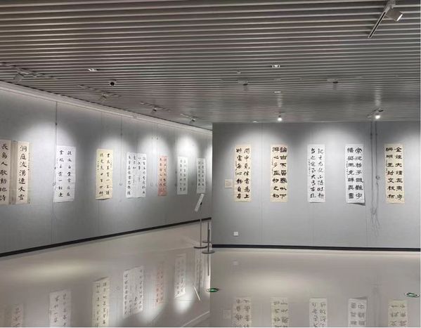 踏入肥城市美术馆,一幅幅风格各异的书法作品映入眼帘,或雄浑大气如千军万马奔腾,或飘逸灵动似云中仙鹤翩跹,或古朴典雅若历史长河沉淀。实践团成员们瞬间被这浓厚的艺术氛围所包围,目光在每一件作品上流连忘返。其中,那些书写着革命诗词和红色标语的作品格外引人注目。这些作品以刚劲有力的笔触,仿佛带着革命年代的热血与激情,生动地展现了革命先辈们在艰苦岁月中不屈不挠、奋勇向前的精神风貌。“红军不怕远征难,万水千山只等闲”,那一笔一划间,仿佛能看到红军战士们在漫漫征途中坚定的步伐;“为人民服务”,短短五个字,却如重锤般敲击在每个人的心上,彰显着共产党人全心全意为人民的无私奉献。