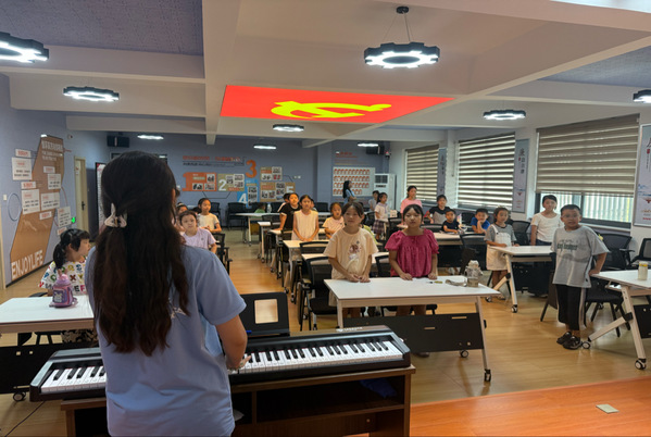 音乐是心灵的翅膀,而童声是最纯净的乐章。8月19日,“众音创益”实践团走进“悦享东方”社区,为孩子们带来了一场充满欢声笑语的合唱排练课。清脆的歌声如清泉流淌,为夏日的午后注入了灵动的活力。