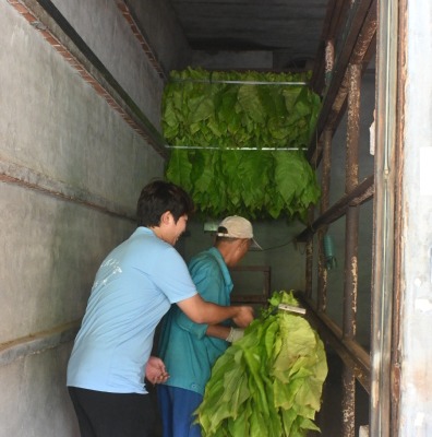 下午,同学们来到村里的烤烟房,一探烟叶蜕变的最后一步。烤房内,一排排挂满烟叶的架子整齐排列,炉火烧得正旺,温度被精准控制在合适的范围。“烤烟得慢慢来,先低温排湿,再逐步升温定色,全程得盯着温度表,一点马虎不得。”负责烤烟的大叔指着墙上的温度计介绍,烤房外飘出淡淡的烟香,那是烟叶在热力中慢慢沉淀出的独特味道。看着原本青绿的烟叶在烘烤中渐渐变成深浅不一的黄褐色,同学们真切感受到,每一片烟叶的成熟,都浸透着烟农的耐心与汗水。