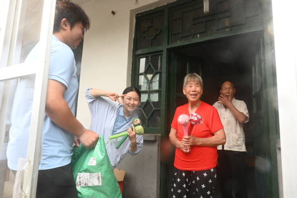 清晨,实践团成员将提前准备好的艾草锤分发给村中老人。艾草锤具有温经通络、缓解酸痛的功效,承载着实践团对老人们的关怀。老人们接过艾草锤,脸上洋溢着幸福的笑容,纷纷对实践团成员的贴心举动表示感谢。随后,实践团成员与老人们围坐在一起,共同包水饺。大家一边包饺子,一边唠家常,欢声笑语充满了整个房间。在这个过程中,实践团成员不仅学会了包饺子的技巧,更深入了解了当地的民俗文化和老人们的生活故事,拉近了与村民的距离。