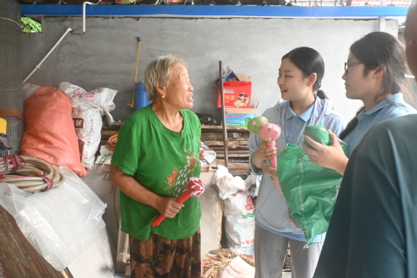 清晨,实践团成员将提前准备好的艾草锤分发给村中老人。艾草锤具有温经通络、缓解酸痛的功效,承载着实践团对老人们的关怀。老人们接过艾草锤,脸上洋溢着幸福的笑容,纷纷对实践团成员的贴心举动表示感谢。随后,实践团成员与老人们围坐在一起,共同包水饺。大家一边包饺子,一边唠家常,欢声笑语充满了整个房间。在这个过程中,实践团成员不仅学会了包饺子的技巧,更深入了解了当地的民俗文化和老人们的生活故事,拉近了与村民的距离。
