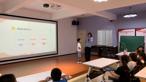其次,慢慢走近:在故事里学会“懂自己”。孩子的情绪往往藏在具体的小事里,实践团成员们用他们身边的故事做教材,让“心理疗愈”变得可触可感:聊到“和朋友吵架”,实践团成员分组扮演小剧场,孩子们发现“说对不起”不是认输,而是让友谊更牢固的小魔法;每一个故事、每一次角色扮演,都在悄悄告诉他们:有情绪不可怕,懂得怎么和它相处才重要。